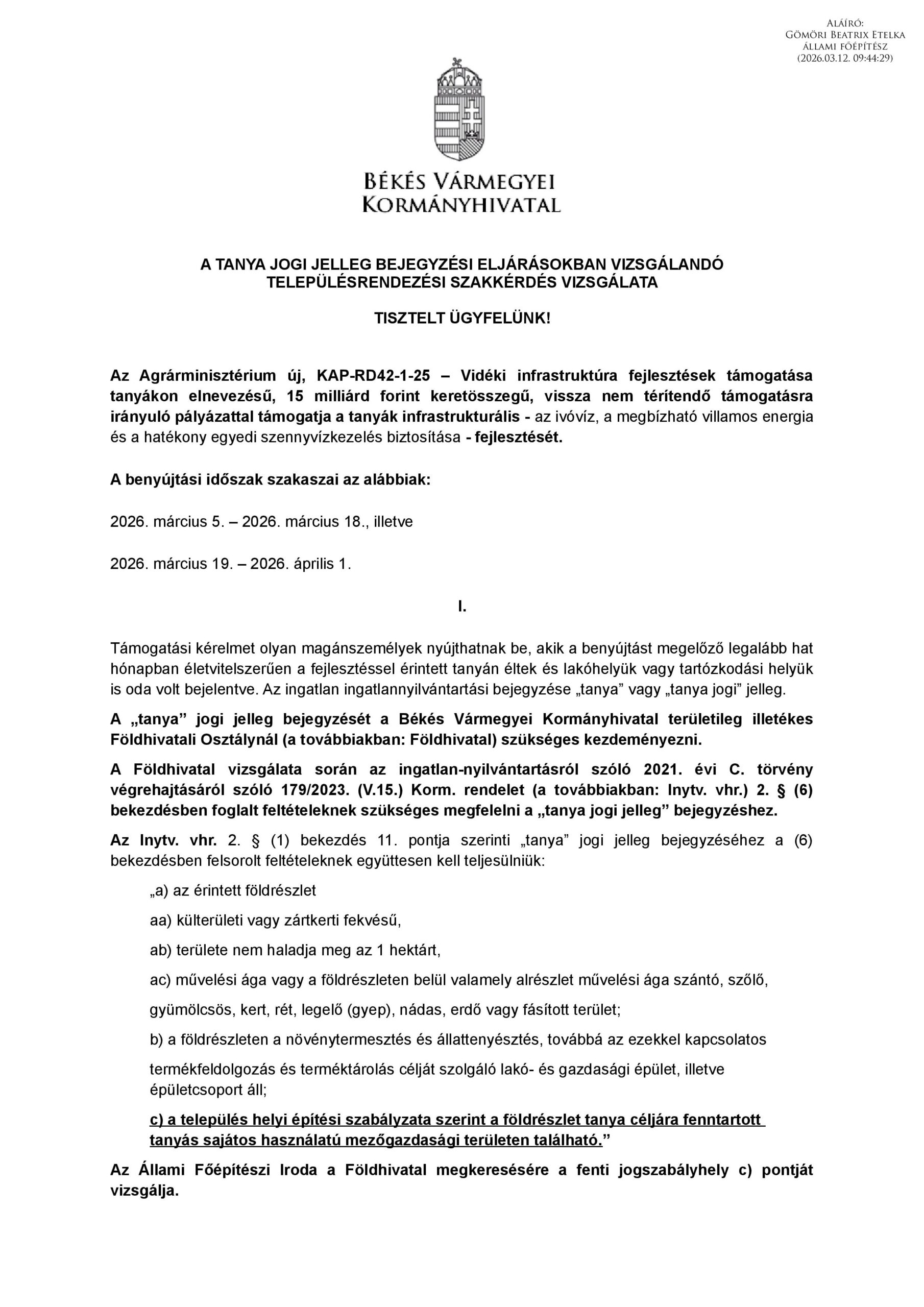 Aktuális, Hírek A TANYA JOGI JELLEG BEJEGYZÉSI ELJÁRÁSOKBAN VIZSGÁLANDÓ TELEPÜLÉSRENDEZÉSI SZAKKÉRDÉS VIZSGÁLATA Ingatlan árverési hirdetmény Tájékoztató a 2026-os országgyűlési választásról